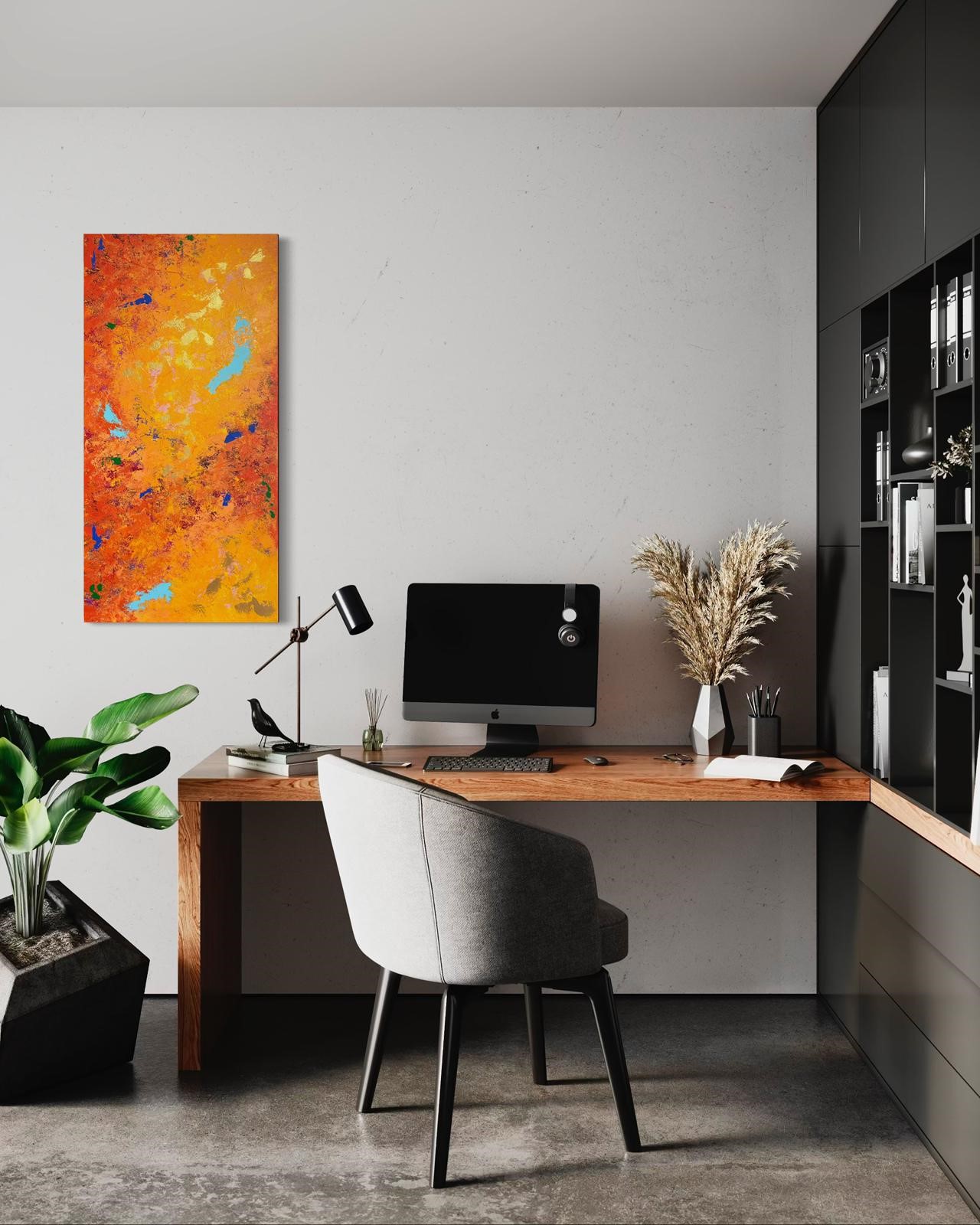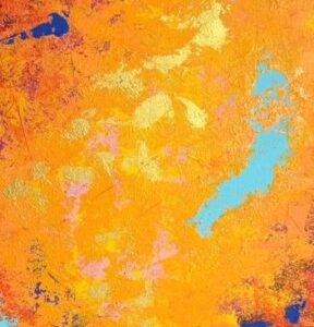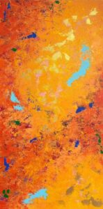 Cette œuvre abstraite, baignée de teintes chaudes et flamboyantes, est d’une intensité rare.