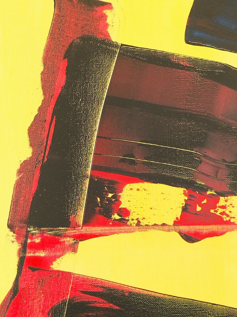 Ce tableau fascine par son minimalisme structuré et ses contrastes chromatiques intenses. Les larges aplats noirs, parcourus de rouge carmin et de bleu électrique, flottent sur un fond crème lumineux, tel un ciel au lever du jour. Chaque bande semble suspendue, en apesanteur, évoquant des fragments d’architecture céleste ou des souvenirs en suspension. Le bleu profond, en touche finale, évoque un horizon d’espoir ou une percée vers l’infini. L’équilibre entre rigueur géométrique et spontanéité gestuelle confère à l’œuvre une tension captivante. Ciel bleu est une pièce contemporaine forte, idéale pour les espaces modernes ou les collections audacieuses. Elle dialogue subtilement entre lumière et densité, entre silence et mouvement. Elle séduira les amateurs d’abstraction lyrique et de design épuré. Une œuvre marquante, à forte personnalité visuelle, qui attire immédiatement le regard et invite à la rêverie.